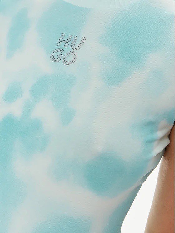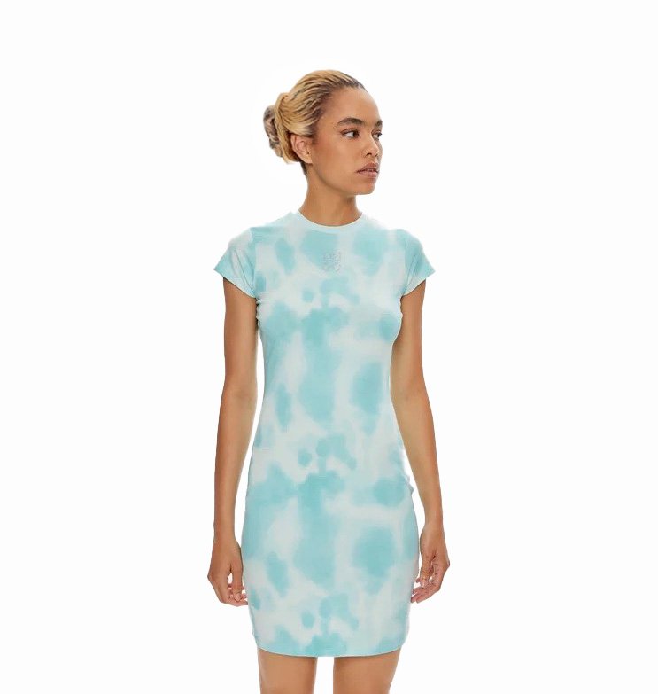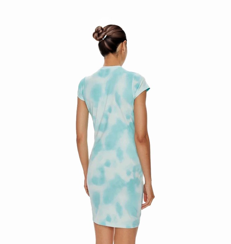 Mot. suknelė, žydros spalvos, trumpomis rankovėmis, apvali kaklo iškirptė, logotipo detalė.
