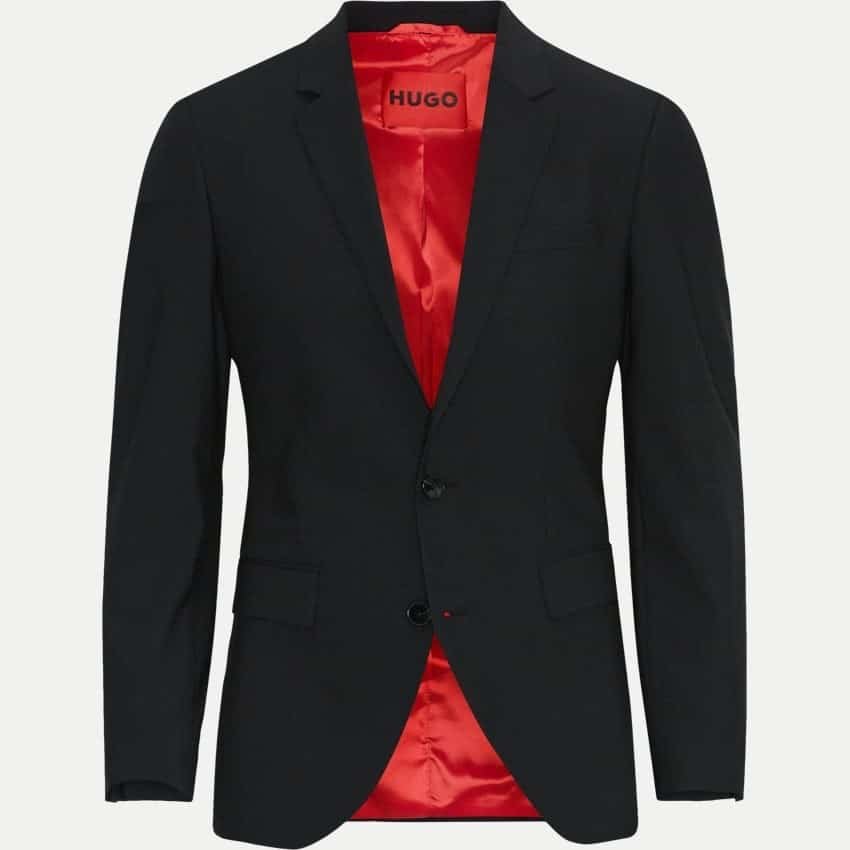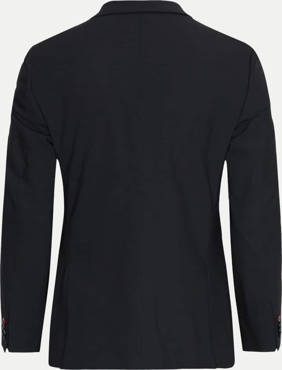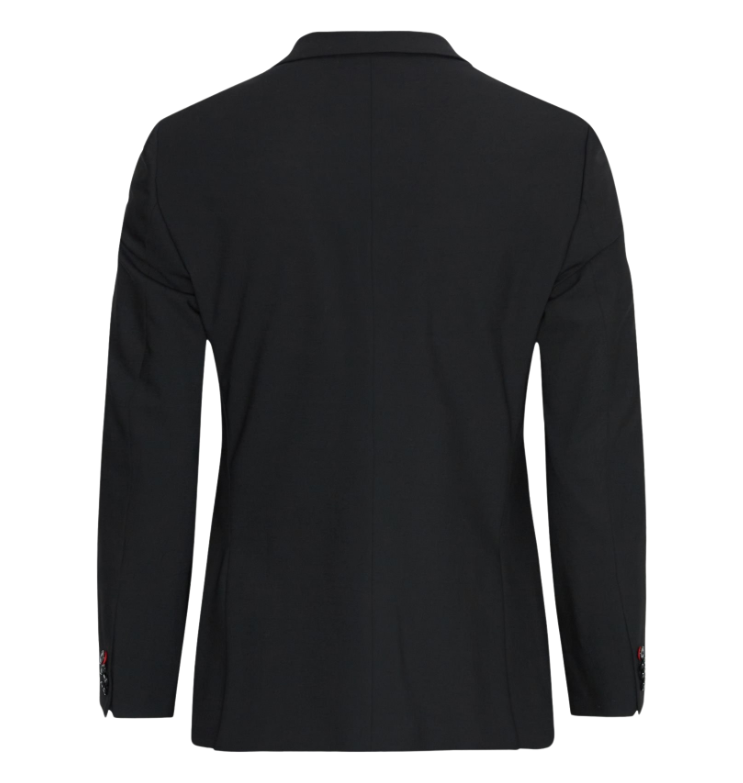 Vyr. švarkas, juodos spalvos, V formos iškirptė, užsegimas sagomis, ilgos rankovės, elegantiškas dizainas, šoninės kišenės.