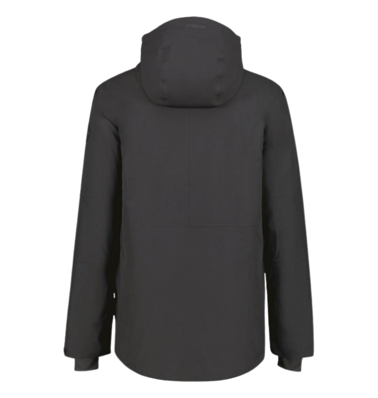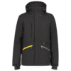 Vyr. slidinėjimo striukė, juodos spalvos, stati apykaklė, gobtuvas, šoninės kišenės, atspari vandeniui, smakro dirželis, reguliuojami rankogaliai ir juosmuo.