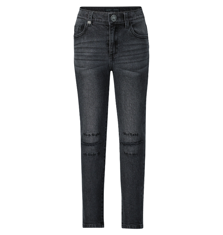 Vaik. džinsai, pilkos spalvos, 5 kišenių dizainas, kilpa diržui, užsegimas užtrauktuku saga.