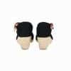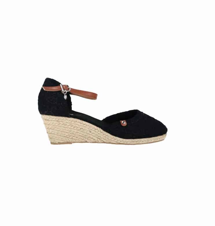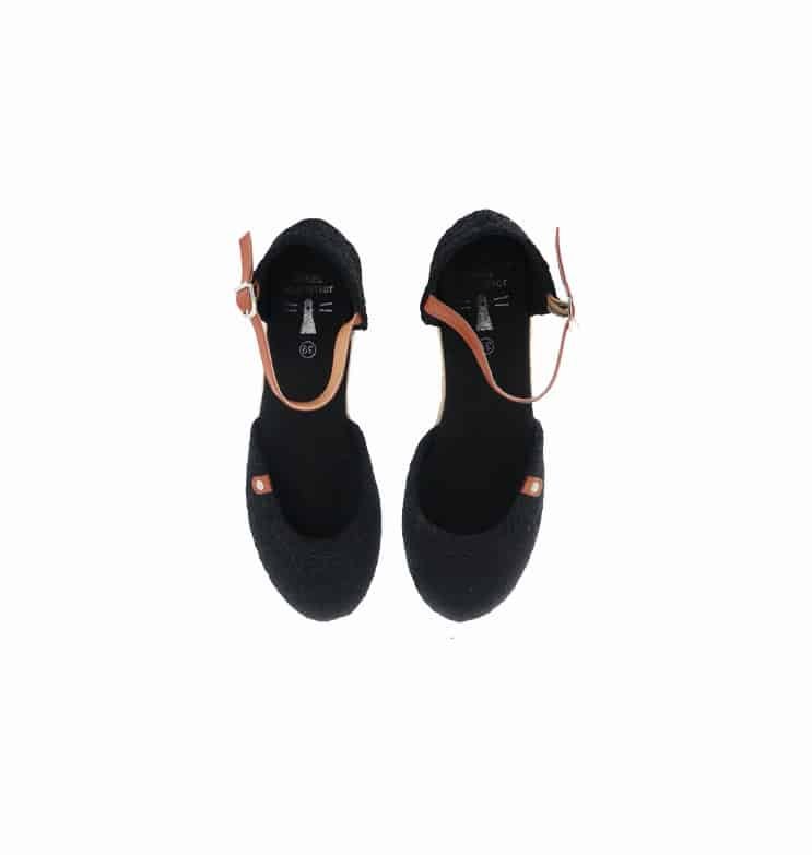 Mot. aukštakulnės basutės, juodos spalvos, su plaforma, batų noselė apvali, įspiriami, užsegimas sagtimi. Sezonas- Vasara. Kulno aukštis-6cm