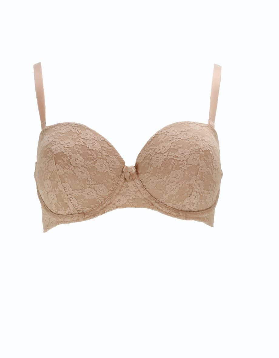 Mot. liemenėlė, kūno spalvos, neriniuoto dizaino, su petnešėlėmis kurios reguliuoja dydį, plati juosta per nugarą.