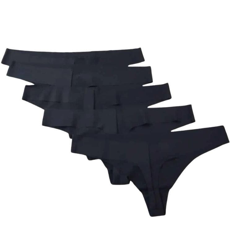 Mot. siaurikės, juodos spalvos, lazeriu kirptos, be siūlės, vidutinis juosmuo, pakuotėje 5vnt. siaurikių.