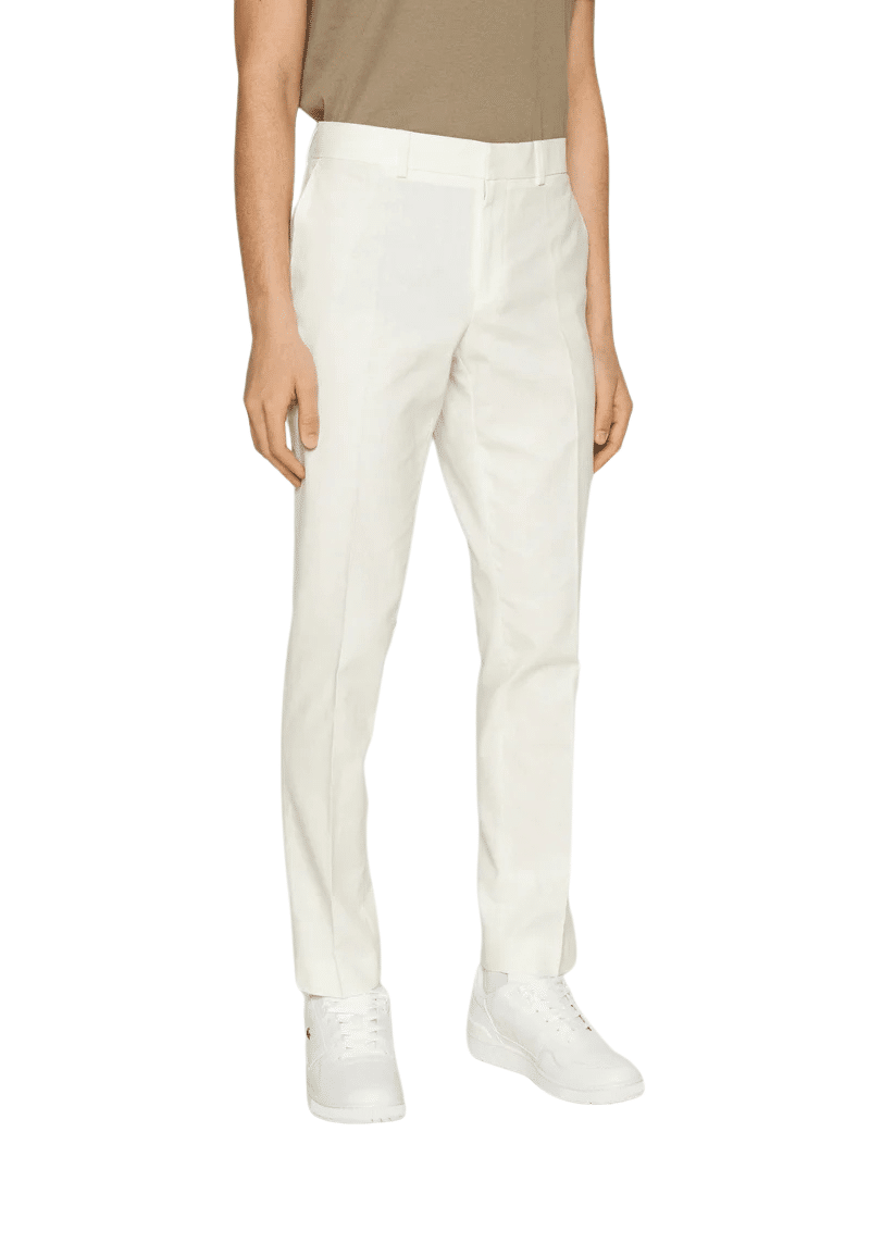 Vyr. kelnės, smėlio spalvos, klasikinio stiliaus, siaurėjančio kirpimo, užsegimas saga ir paslėptu užtrauktuku, šoninės ir galinės kišenės.