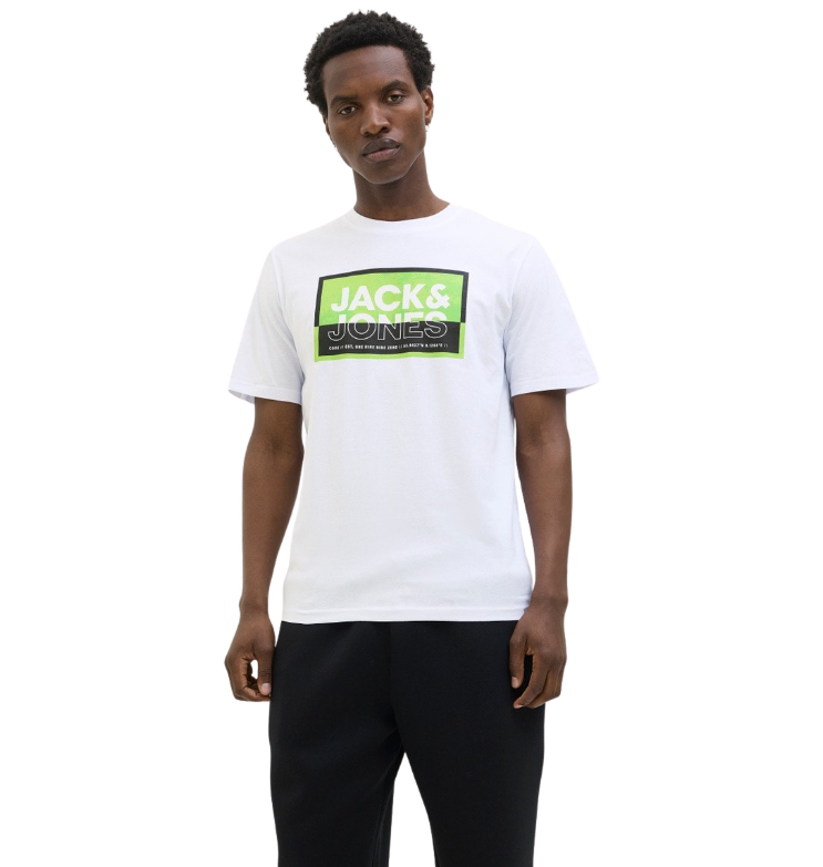 Vaik. marškinėliai, baltos spalvos, apvali kaklo iškirptė, trumpos rankovės, spausdintas logotipas.