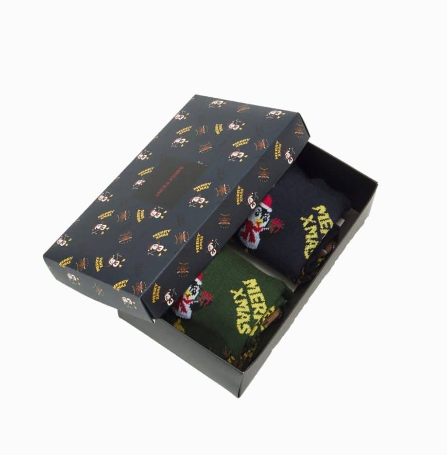 Vyr. kalėdinė dežutė, su apatiniais ir kojinėmis pakuotėje, tamsios mėlynos/ žalios spalvos, trumpikės Trunk stiliaus elastingas juosmuo, kalėdinis raštas. kojinės vidutinio ilgumo su kalėdiniais raštais.