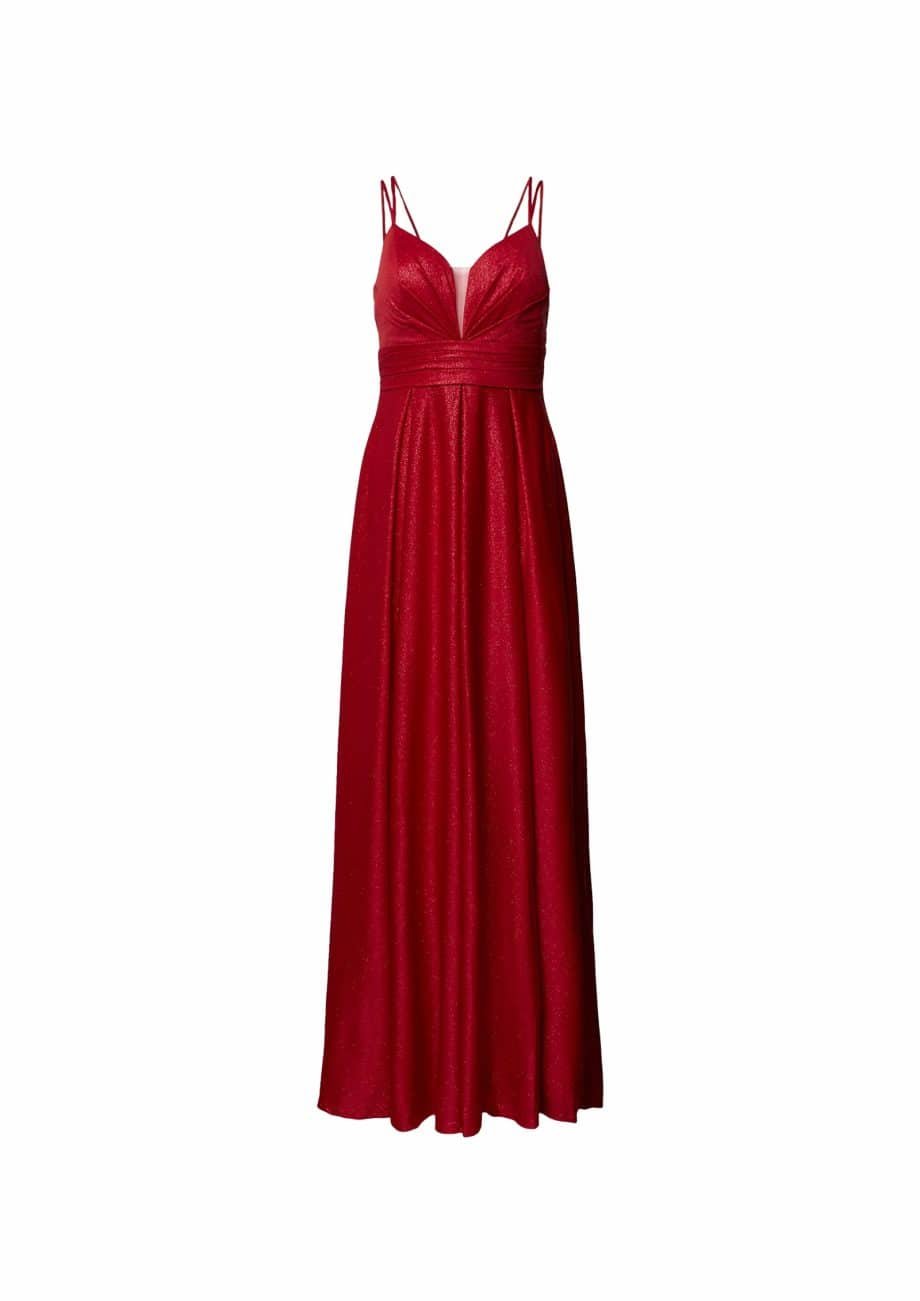 Mot. vakarinė suknelė, raudonos spalvos, blizgantis dizainas, ant šleikučių, širdies formos iškirptė, juosmens juosta, užsegimas kabliuku ir užtrauktuku.