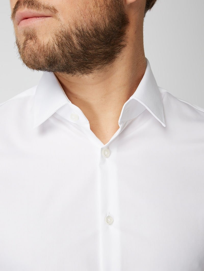 Vyr. marškiniai, baltos spalvos, ilgomis rankovėmis, užsegimas per visą ilgį, kento apykaklė.