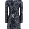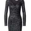 Mot. kokteilinė suknelė, juodos spalvos, ilgomis rankovėmis, V formos iškirptė, su blizgučiais, nugaros užtrauktukas.
