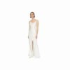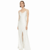 Mot. vakarinė suknelė, baltos spalvos, be rankovių, atvira nugara, skeltukas.