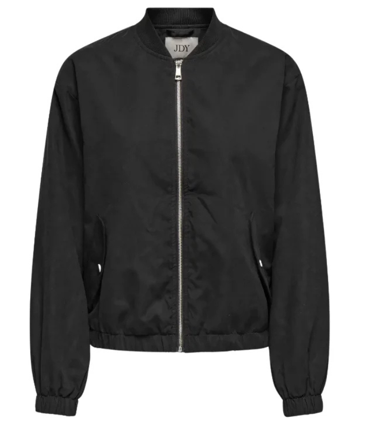 Mot. striukė, juodos spalvos, ilgomis rankovėmis, priekyje kišenės, užsegimas užtrauktuku per visą ilgį.