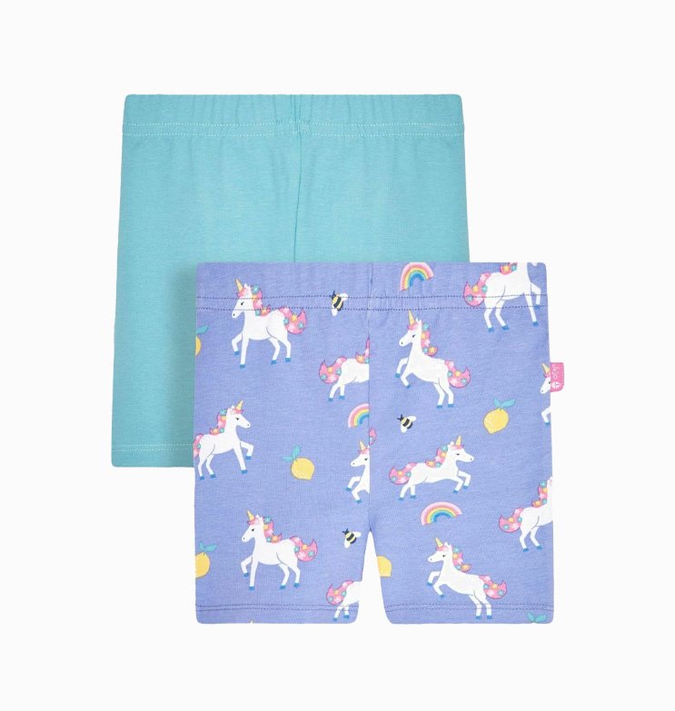 Vaik. šortų rinkinys, violetinės/ žalios spalvos, elastinė juosmens juosta, vienaragių dizainas.