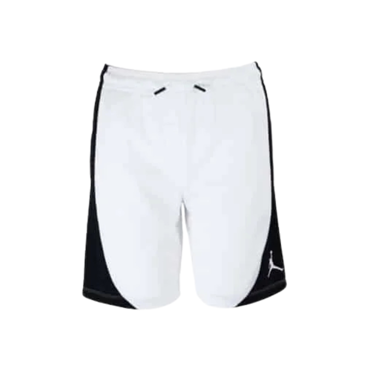 Vaik. šortai, baltos spalvos, juosmuo yra elastinga, reguliuojama virvele, apačioje prekės ženklo logotipas.