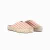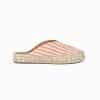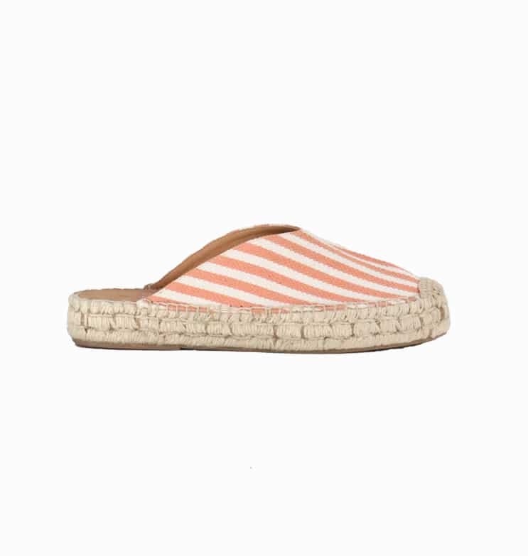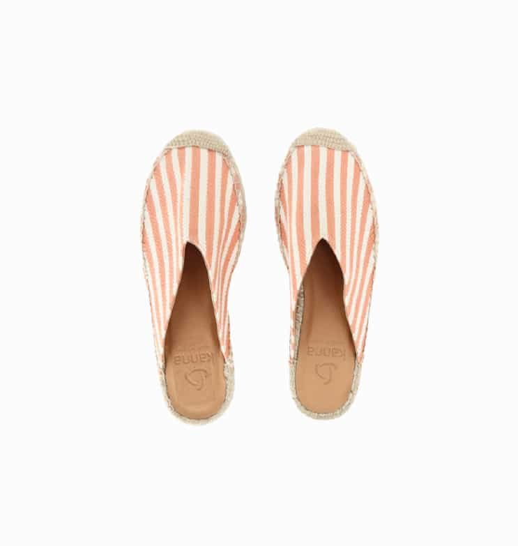 Mot. sandalai, oranžinės spalvos, apvali batų nosis, be užsegimo, atvira užkulnė, dryžuoto rašto.