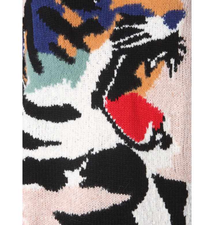 Mot. megzta suknelė „Kenzo“ . Ji pasižymi populiariu nuleistų pečių dizainu ir briaunuota iškirpte, suteikiančia madingumo. Šviesą atspindinčios detalės puikiai papildo subtilią spalvų gamą.