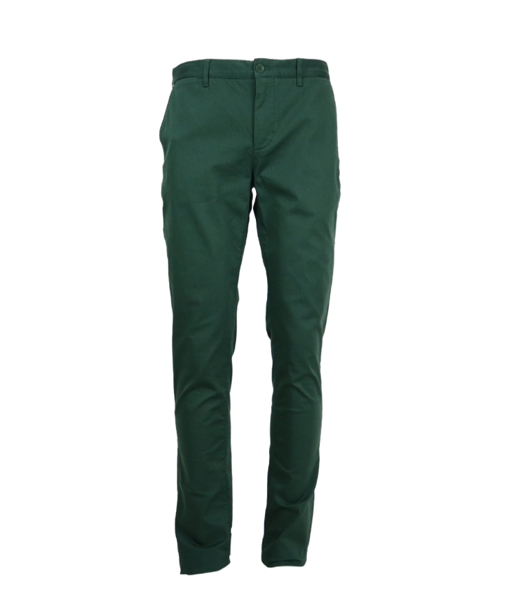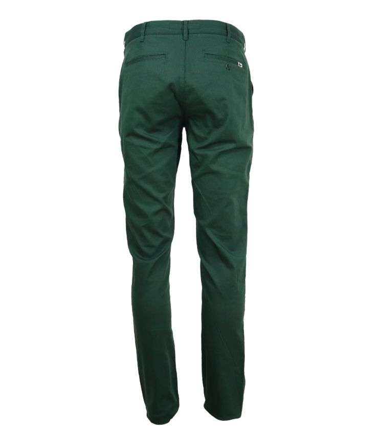 Vyr. kelnės, prigludusios, tamprios medžiagos, tamsiai žalios spalvos, 3kišenių dizainas.