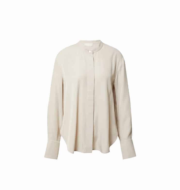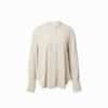 Mot. marškiniai, smėlio spalvos, ilgomis rankovėmis, apvali iškirptė, paslėptas užsegimas sagomis, Oversize stilius.