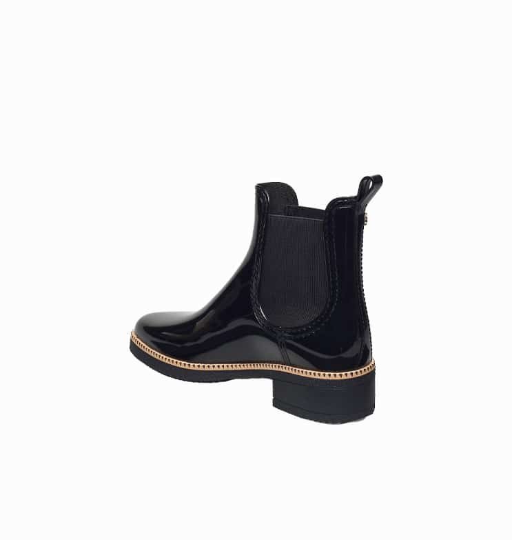 Mot. batai nuo lietaus, juodos spalvos, batų noselė smailėjanti, prakaitą sugeriantis mikropluošto padas, citrinos kvapas, neperšlampantys. Sezonas- Ruduo/ Pavasaris.