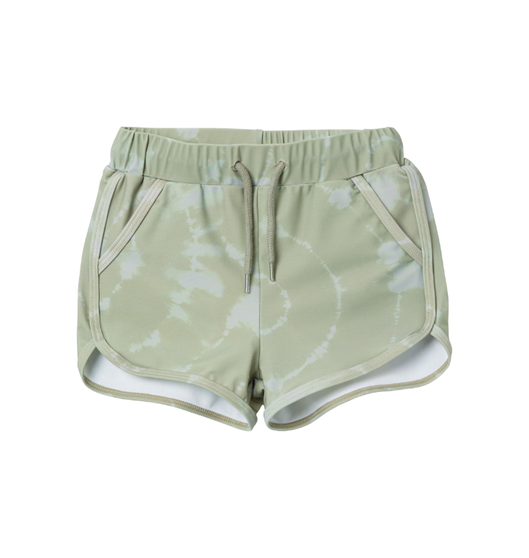 Vaik. maudymosi glaudės, chaki spalvos, šoninės kišenės, elastinga juosmuo su raišteliais.