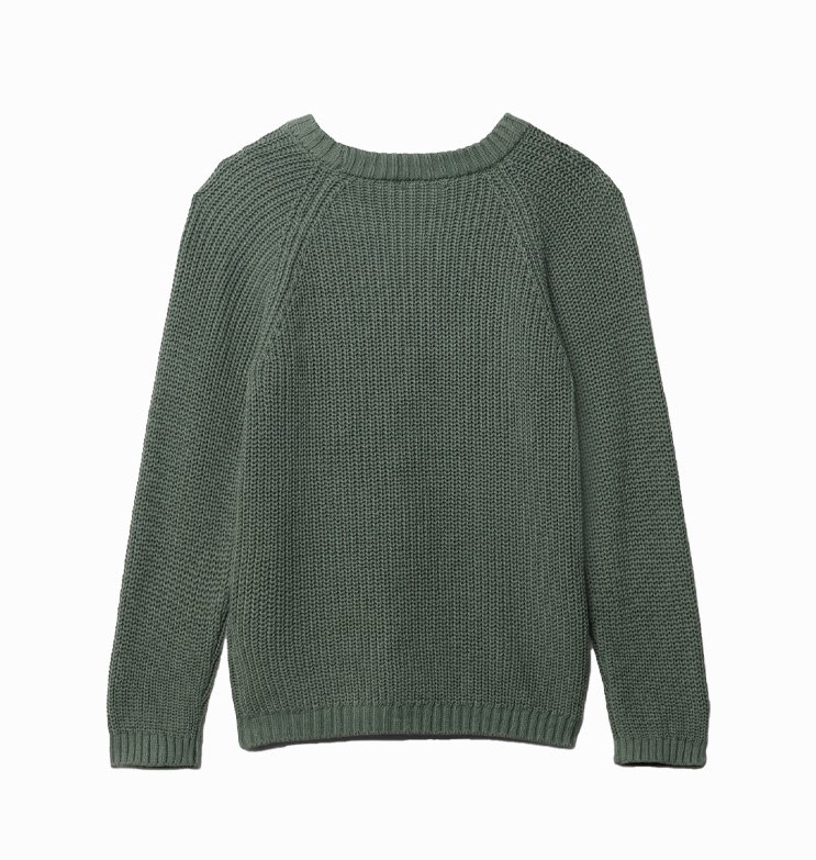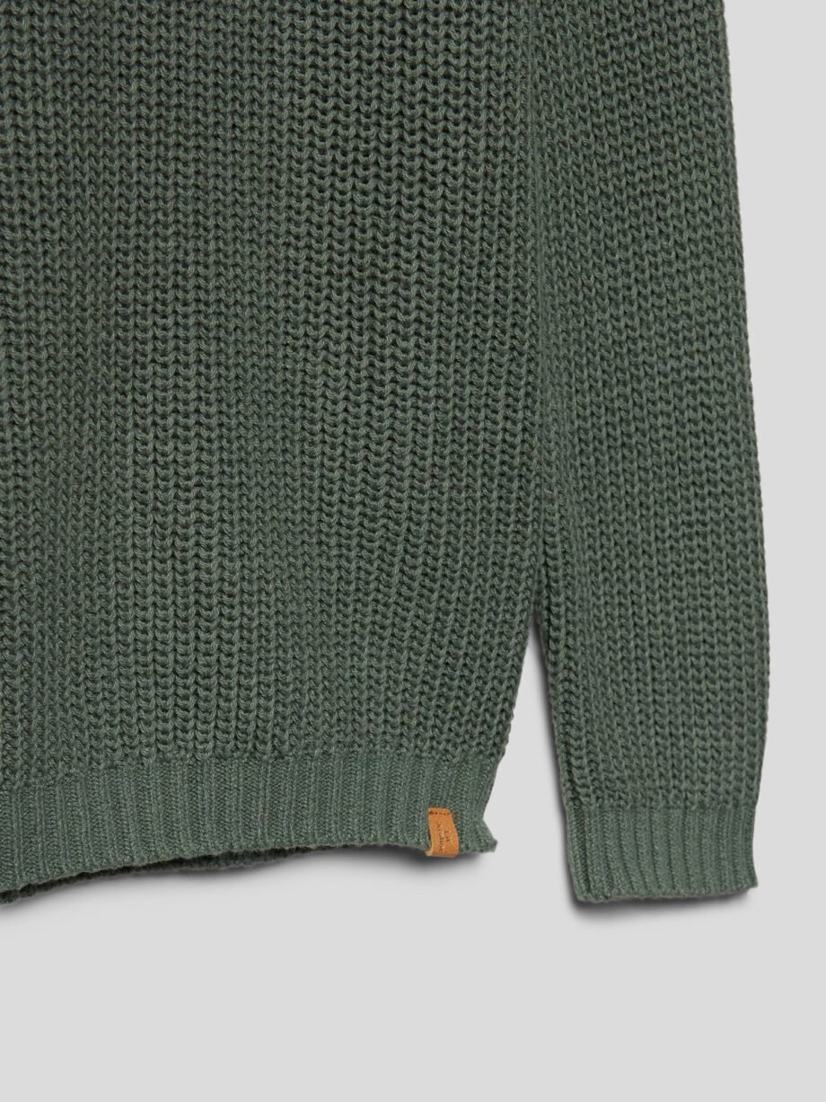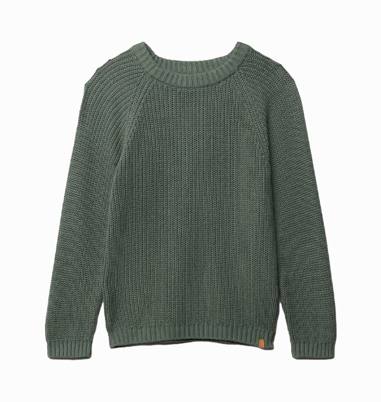 Vaik. megztinis, žalios spalvos, ilgomis rankovėmis, apvali kaklo iškirptė, megzto rašto, logotipo detalė.