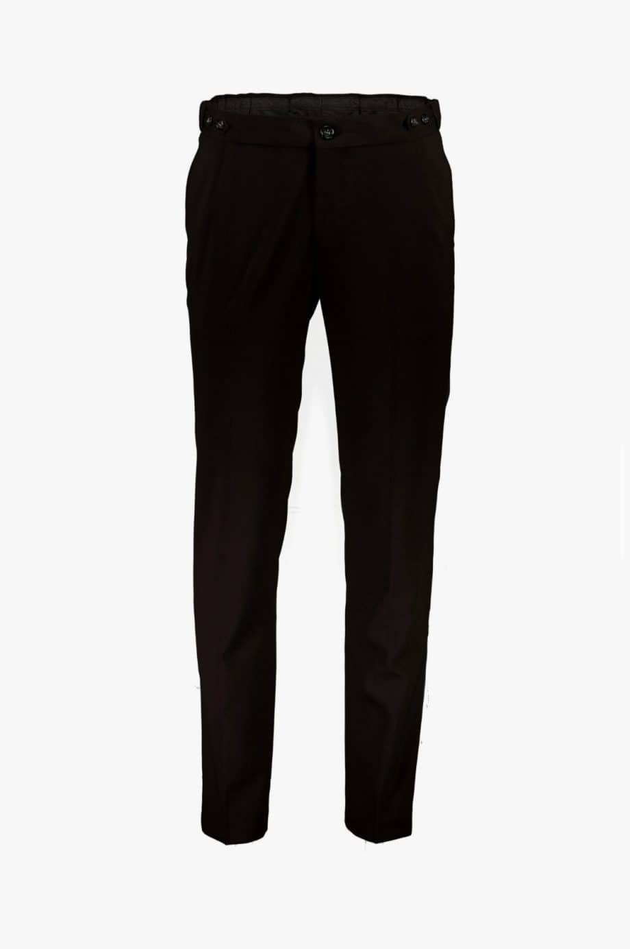 Vyr. kostiuminės kelnės, juodos spalvos, tiesaus kirpimo, užsegimas saga ir užtrauktuku, diržo kilpos, klasikinio stiliaus, šoninės ir galinės kišenės.