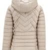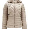 Mot. demisezoninė striukė, smėlio spalvos, ilgos rankovės, su gobtuvu, auksinės spalvos detalės, šoninės kišenės, nuimamas gobtuvas.