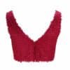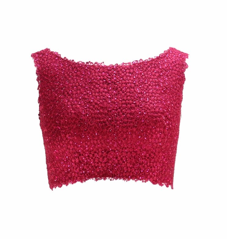 Mot. palaidinė, burgundiškos spalvos, be rankovių, blizgi nėriniuota, siuvinėtais karoliukais, plačios petnešėlės, užsegimas užtrauktuku.
