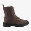 Mot. Aulinukai, rudos tamsios spalvos, apvali noselė, užsegimas užtrauktuku, suvarstomi batraiščiais, be pašiltinimo.