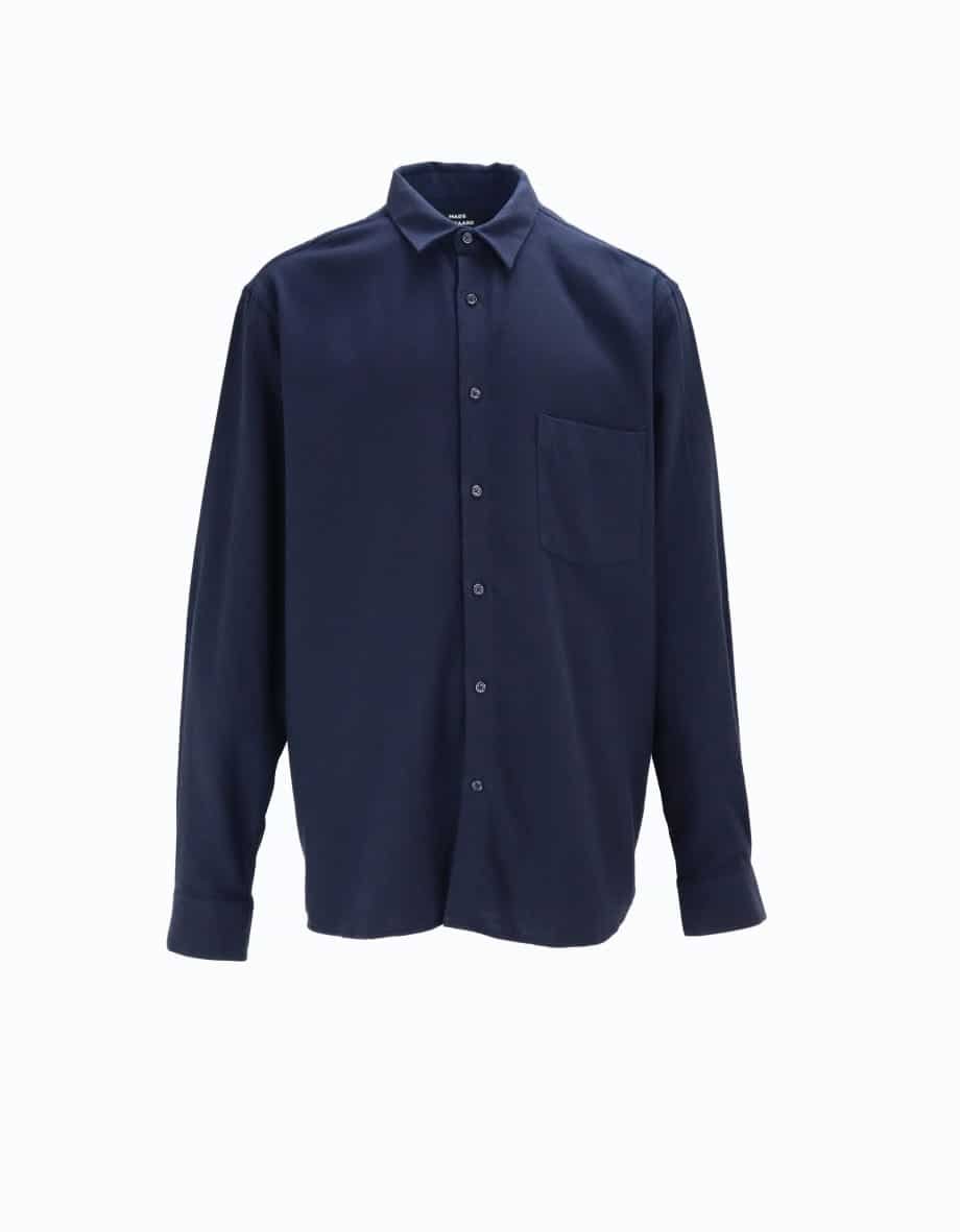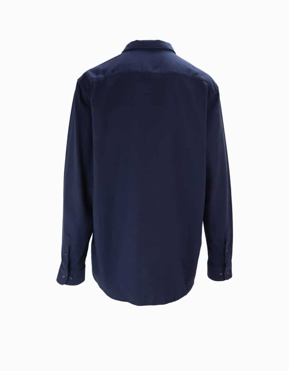 Vyr. marškiniai, tamsiai mėlynos spalvos, ilgomis rankovėmis, marškinių apykaklė, užsegimas sagomis, kišenė ant krūtinės.