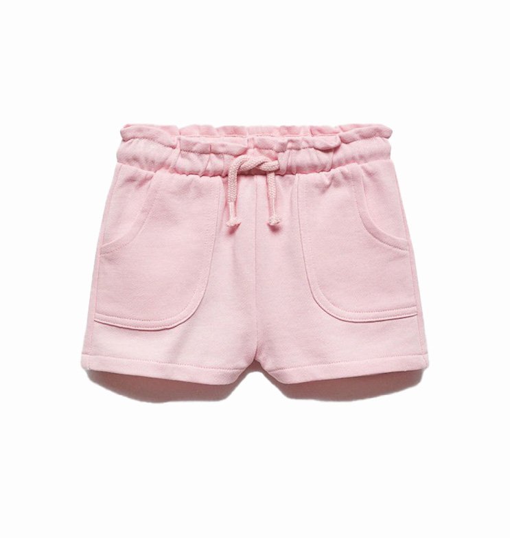 Vaik. šortai, rožinės spalvos, elastingas juosmuo reguliuojamas raišteliais, šoninės kišenės.