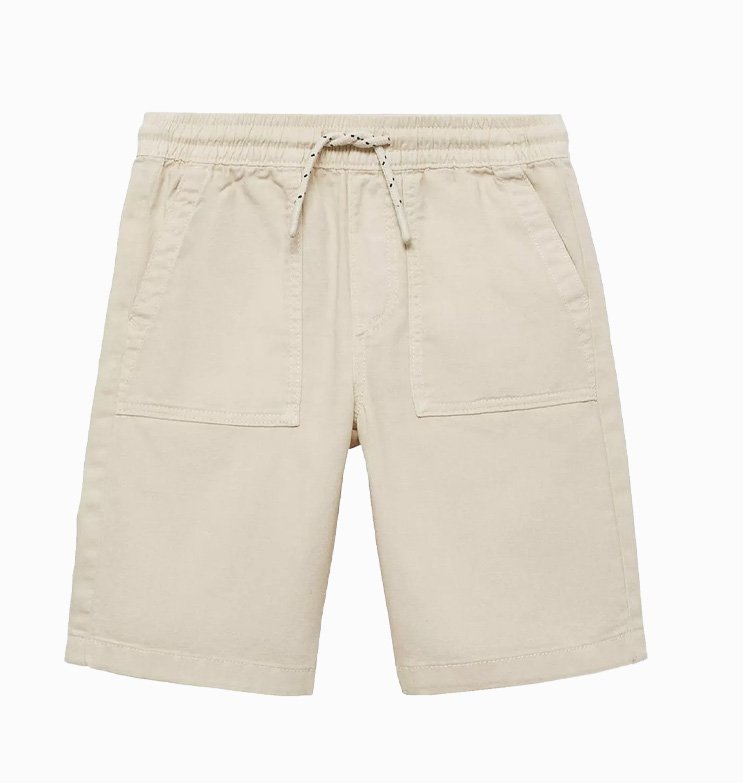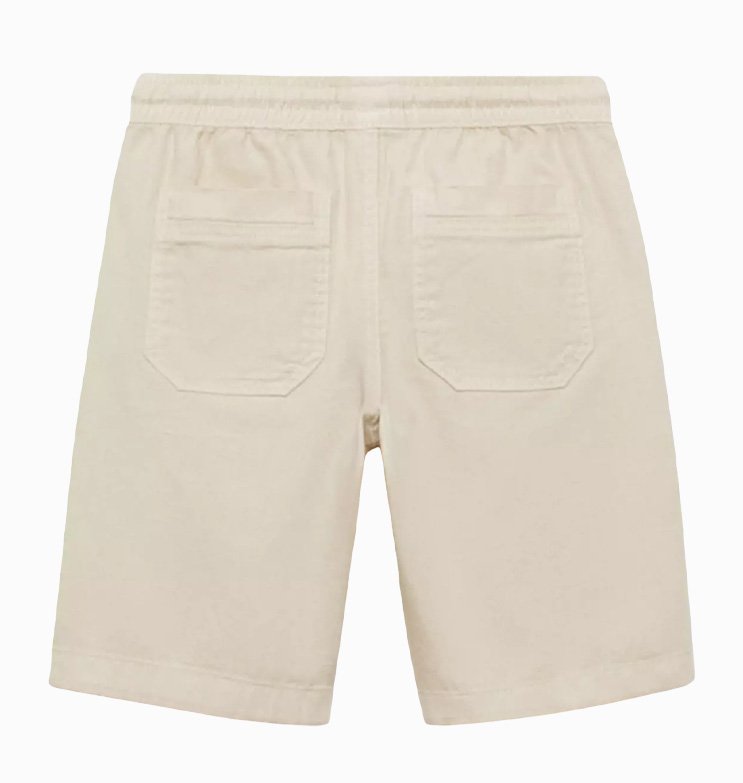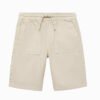 Vaik. šortai, smėlio spalvos, šoninės užpakalinės kišenės, elastinga juosmuo su raišteliais.