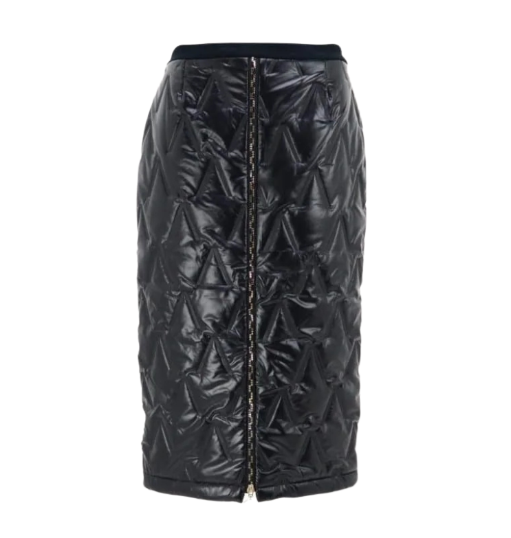 Mot. sijonas, juodos spalvos, pieštuko formos, užsegimas užtrauktuku, tiesaus kirpimo, ilgis iki blauzdos.