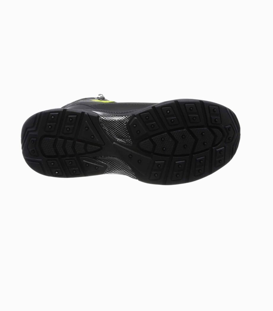 Vyr. žygio batai, juodos spalvos, apvali batų nosis, suvarstomi, medžiaginiai batraiščiai, vandeniui atsparūs, dygliuotas padas.