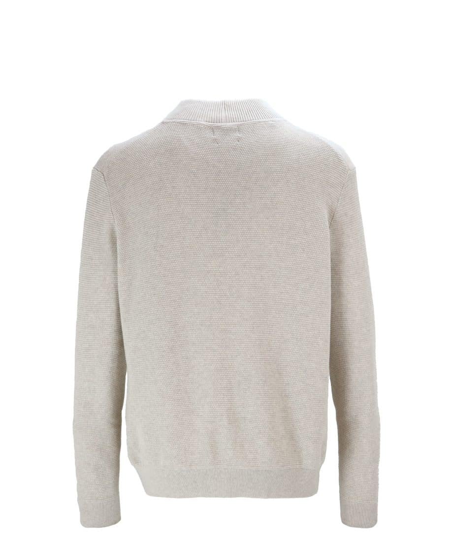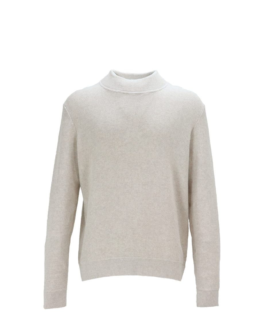 Vyr. megztinis, smėlio spalvos, ilgomis rankovėmis, apvali iškirptė, megzto rašto, tiesus kirpimas, briaunuoti rankogaliai, nuleisti pečiai.