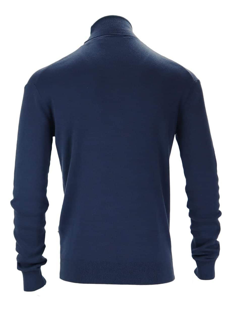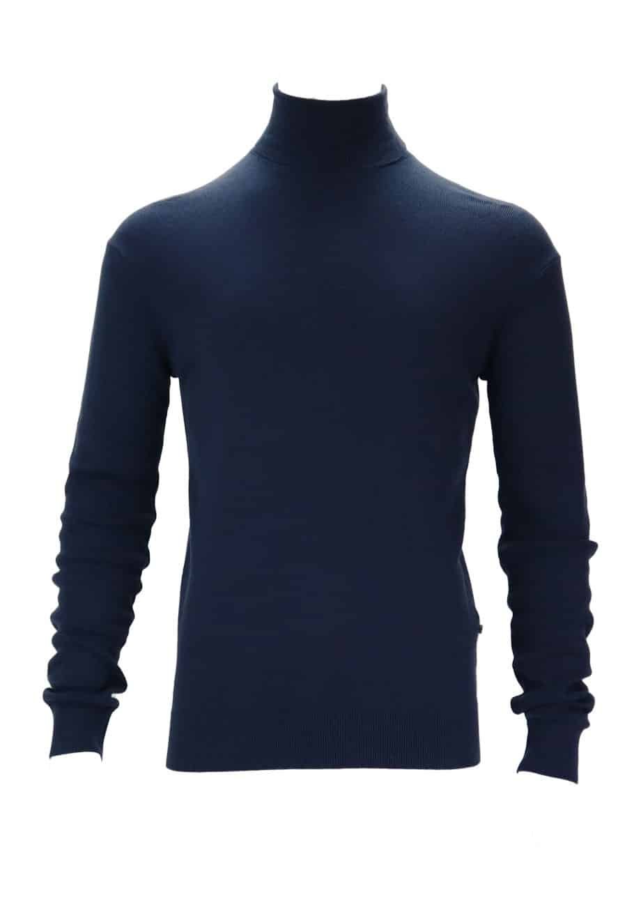 Vyr. golfas, mėlynos spalvos, ilgomis rankovėmis, aukštu kaklu, tiesaus kirpimo, elastingas juosmuo ir rankogaliai.