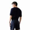 Vyr. šortai, tamsiai mėlynos spalvos, šoninės kišenės, užpakalinė kišenė, raštas vienspalvis.
