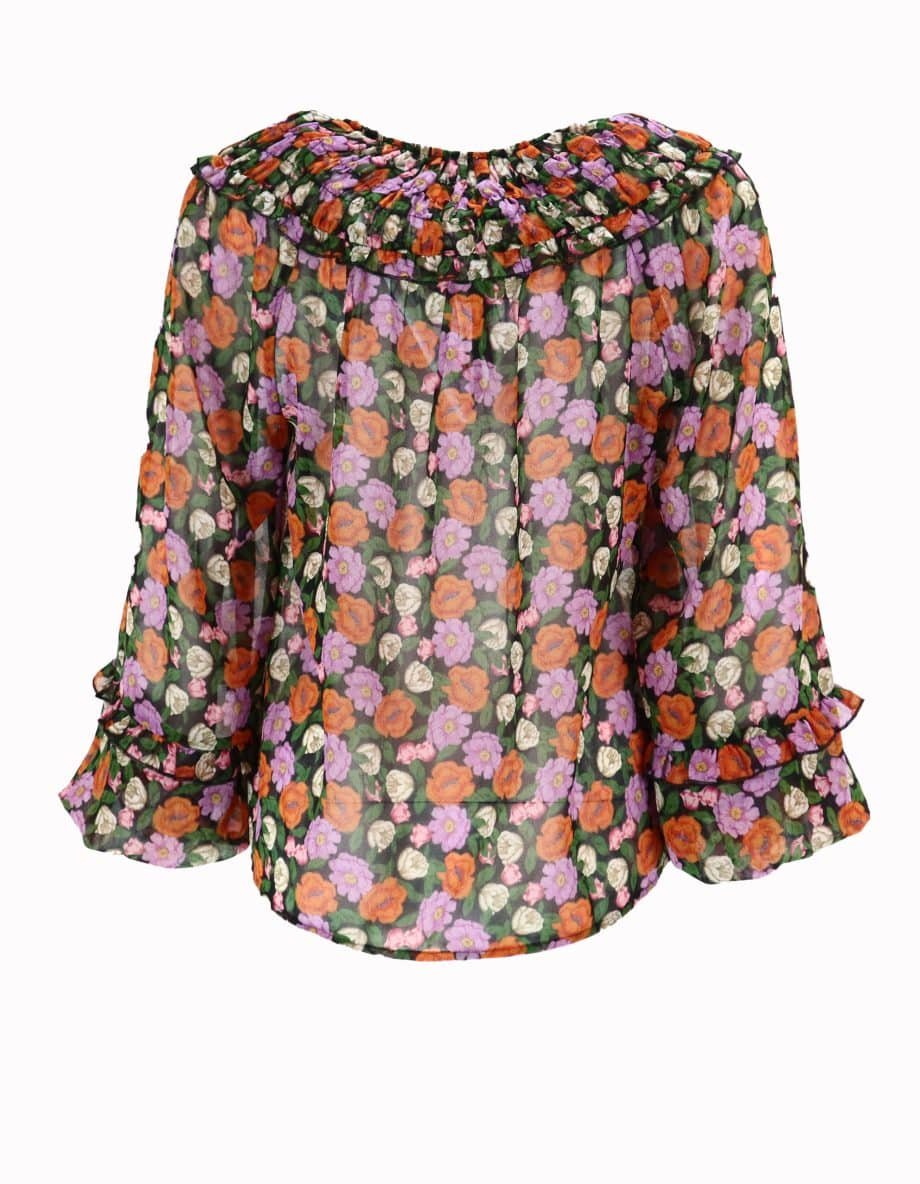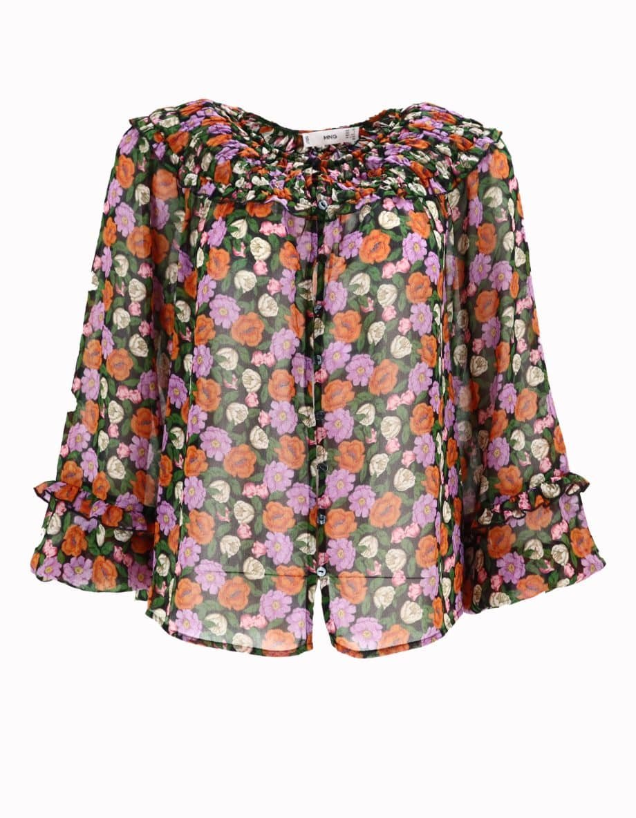 Mot.palaidinė, audinys krentantis, mažai glamžus, gėlėta, ilgomis rankovėmis.