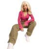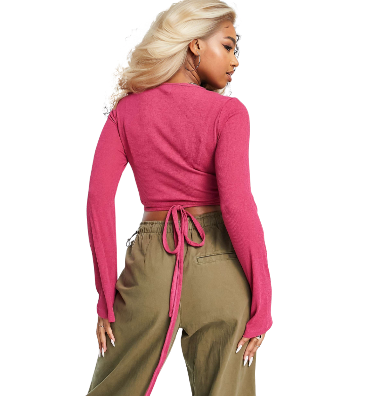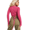 Mot. palaidinė, rožinės spalvos, ilgomis rankovėmis, V formos kaklo iškirptė, surišama raišteliais.
