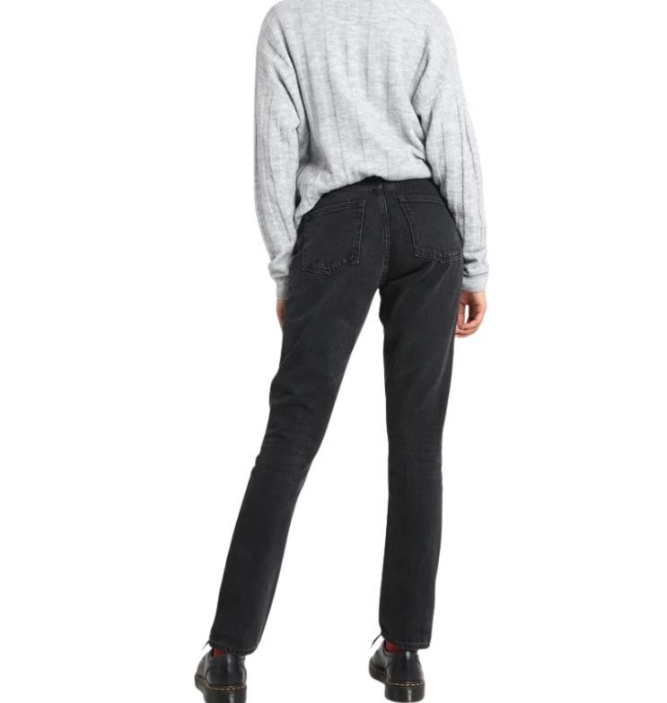 Mot, džinsai aukštesniu liemeniu.