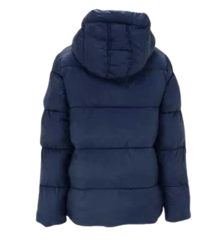 Mot. mamos striukė, tamsios mėlynos spalvos, užsegimas užtrauktuku, gaubtas su raišteliais, šoninės kišenės, tiesaus kirpimo.
