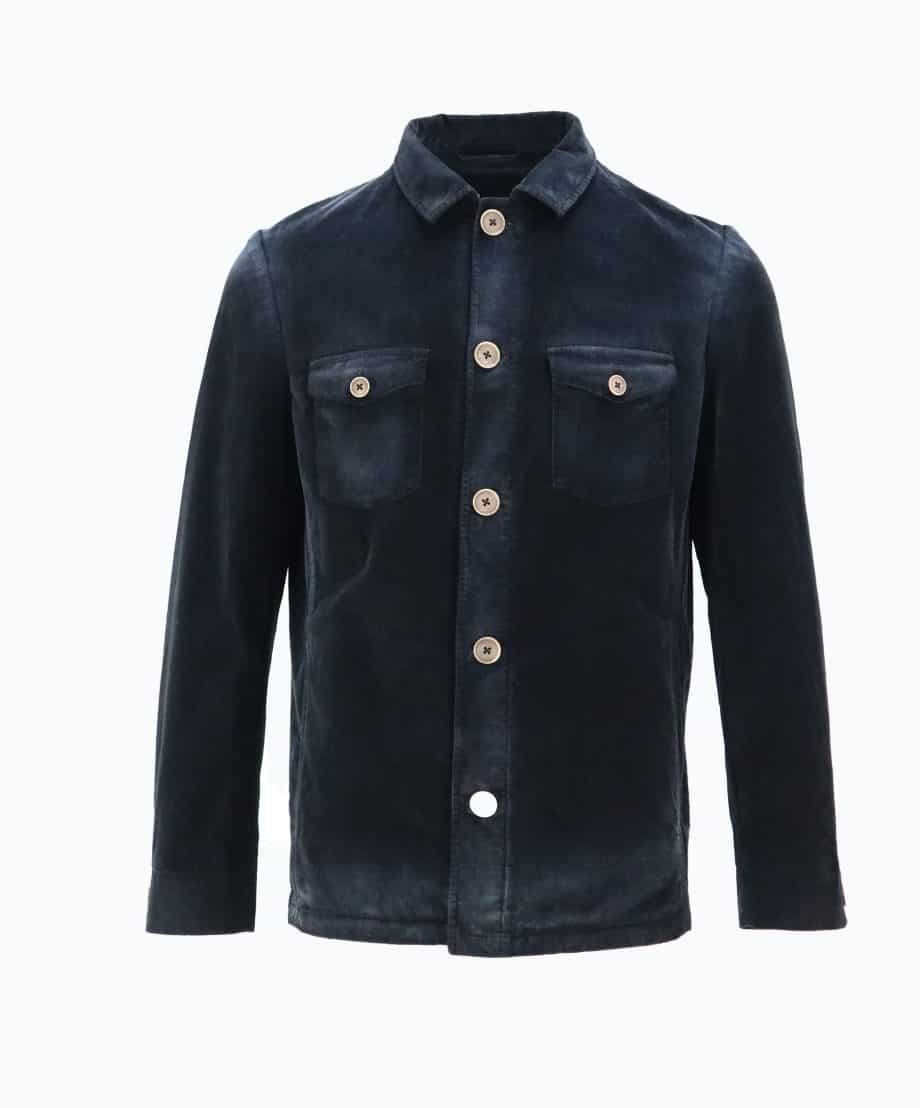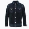 Vyr. marškinių striukė, juodos spalvos, ilgomis rankovėmis, tiesaus kirpimo, atlenkiama apykakle, užsegimas sagomis, rankogaliai užsegami sagomis.