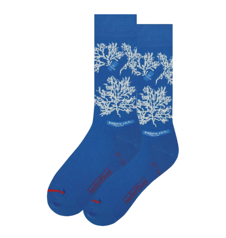 Mot. kojinės mėlynos spalvos, vidutinio ilgio, spausdintas raštas.