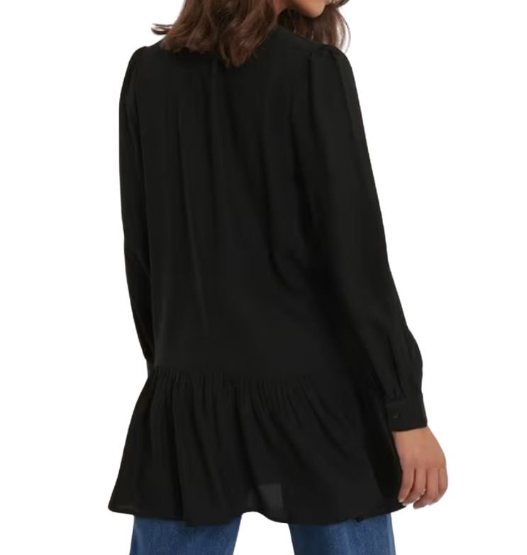 Mot, juodos spalvos suknelė ilgomis rankovėmis. Per visą ilgį segasi sagomis.