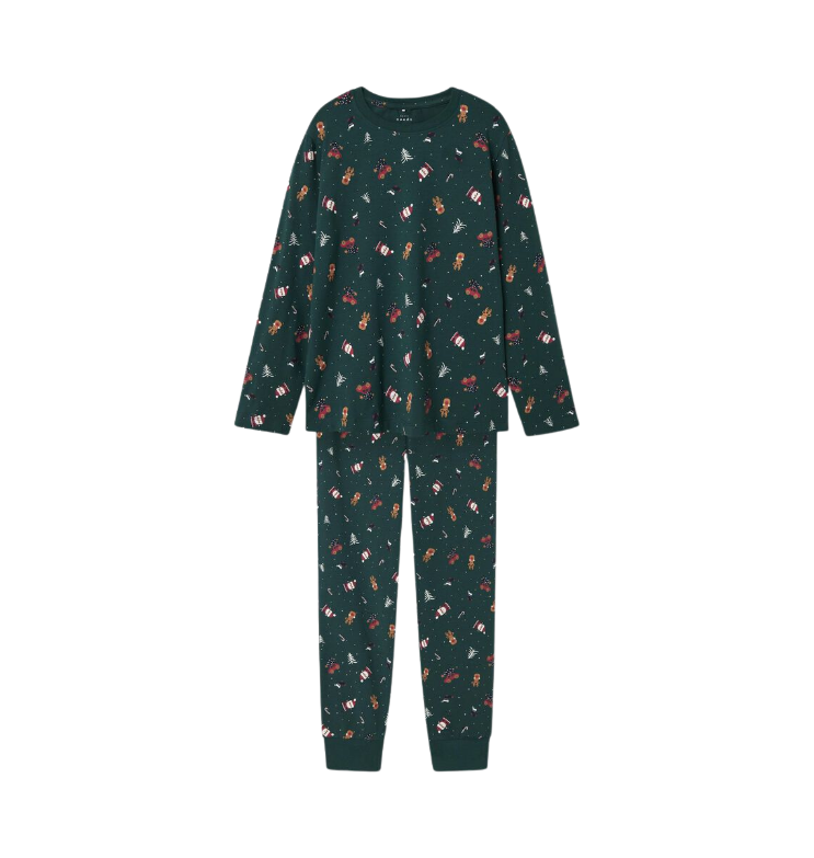 Vaik. pižama, žalios spalvos, ilgomis rankovėmis, apvali kaklo iškirptė.