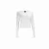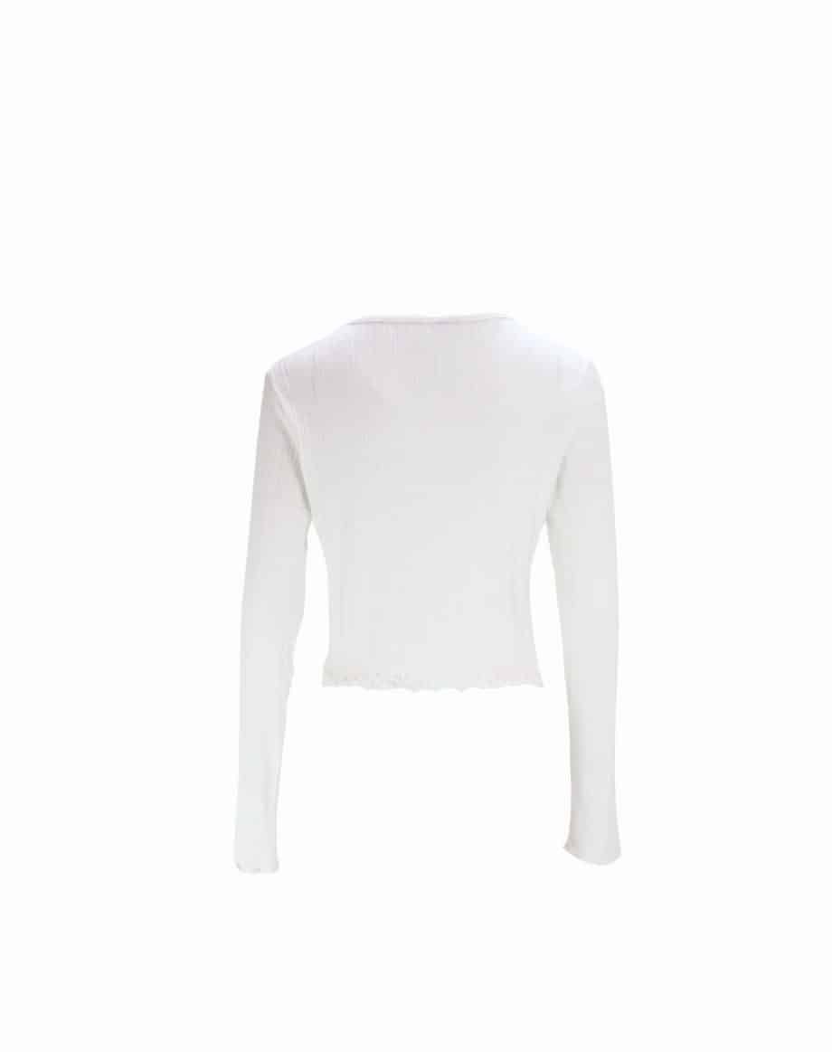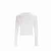 Mot. palaidinė, baltos spalvos, ilgomis rankovėmis, vertikalus raštas, apvali iškirptė, rankogaliai banguoti.