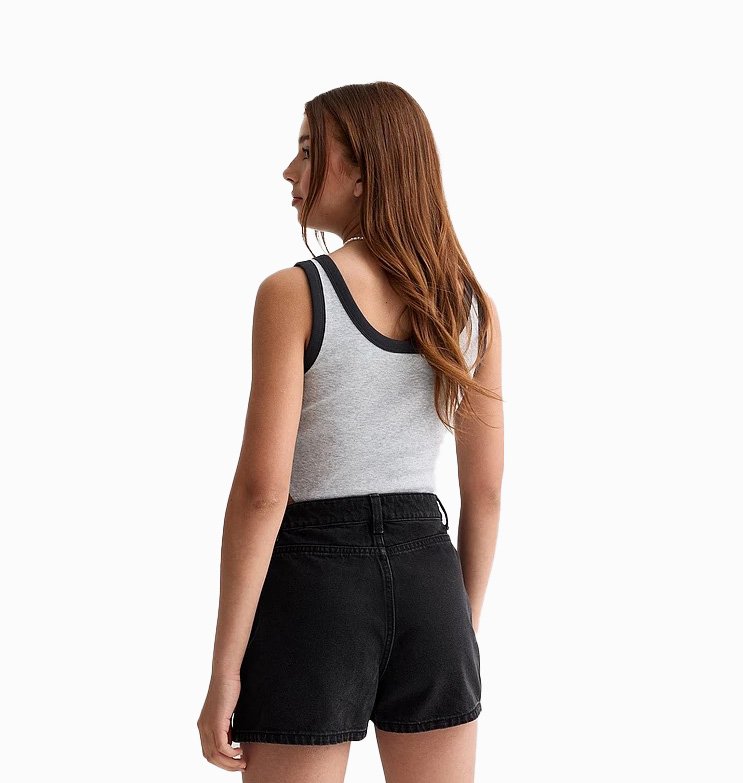 Vaik. džinsiniai šortai, juodos spalvos, užsegimas sagute ir užtrauktuku, 5 kišenių dizainas, diržo kilpos.