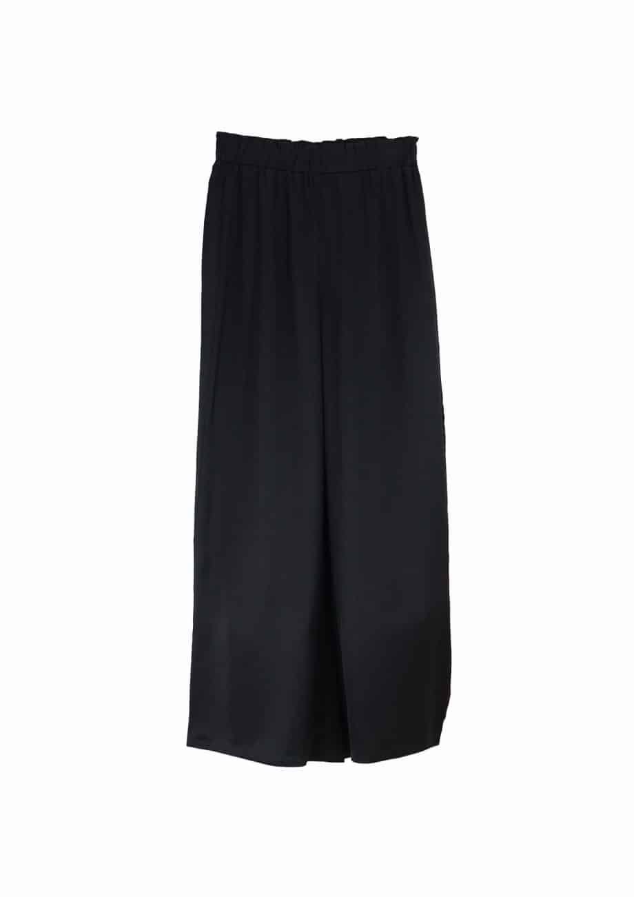 Mot. kelnės, juodos spalvos, tiesaus kirpimo, ilgos, elastingas juosmuo, elegantiško dizaino, plonas audinys.