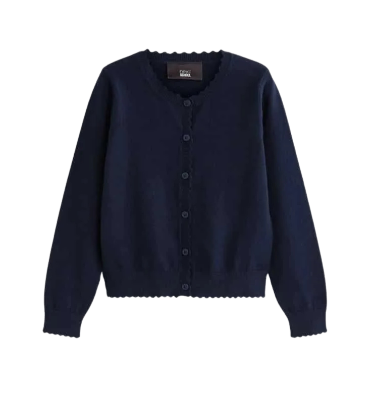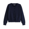 Vaik. megztinis, mėlynos spalvos, užsegimas sagomis, ilgos rankovės, apvlus kaklas, briaunuoti galai.