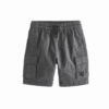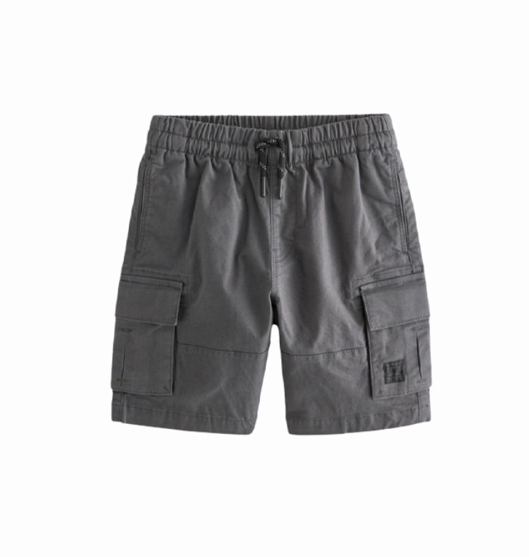 Vaik. šortai, pilkos spalvos, juosmuo elastingas, su raišteliais, praktišku dizainu su didelėmis šoninėmis kišenėmis.