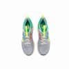 Vyr. bėgimo batai, pilkos spalvos, apvali batų nosis, plokščias padas, suvarstomi, spalvingo rašto, pralaidūs orui, sustiprintas kulnas.